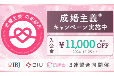 ライトコース、マリッジコース、プレミアムコースの何れも「入会金」「登録料」が半額になります。