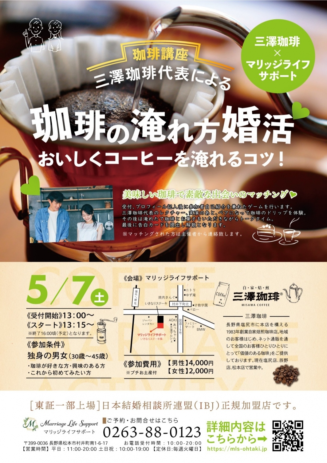 三澤社長による珈琲講座と婚活が一緒になったイベントです(*^▽^*)