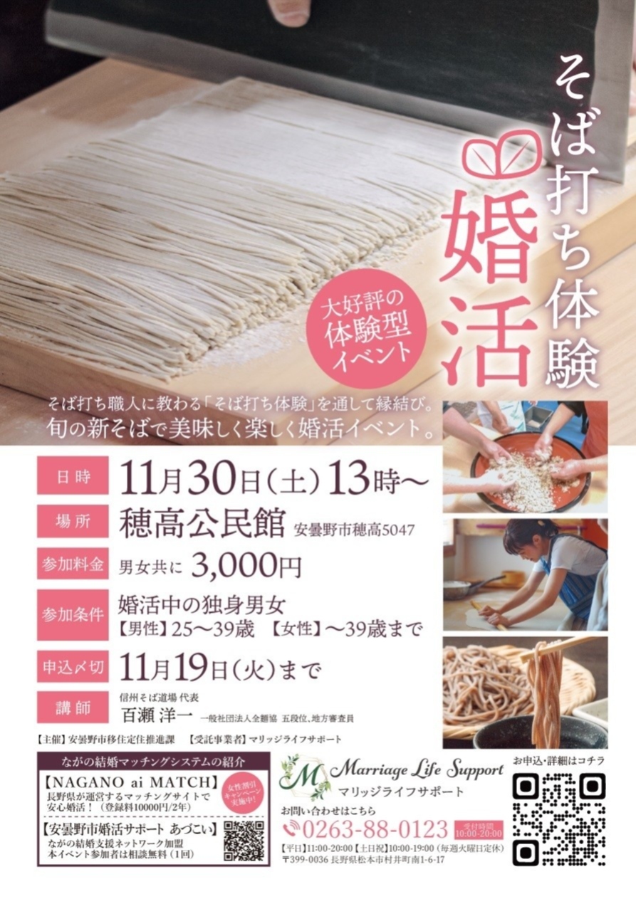 11月30日(土)安曇野市主催 そば打ち婚活イベント