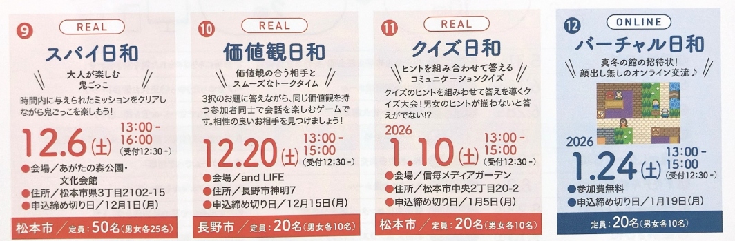 何れも20才以上の独身者であればOKで、なんと!参加費無料!!