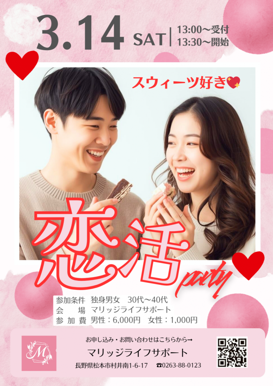 3月14日(土)スウィーツ好きの恋活パーティー開催