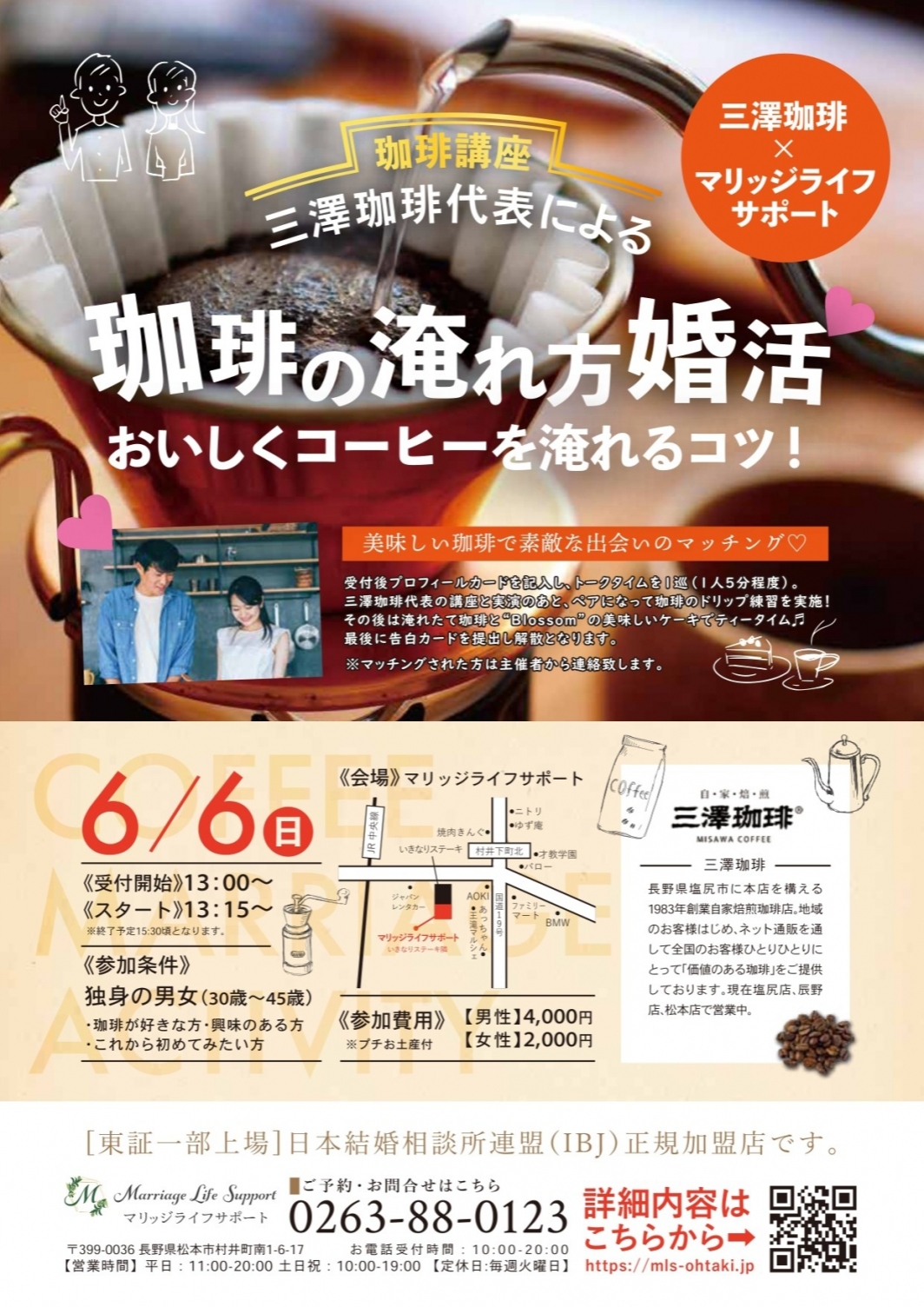 三澤珈琲とのコラボイベント開催~☕珈琲の淹れ方💛婚活💛~