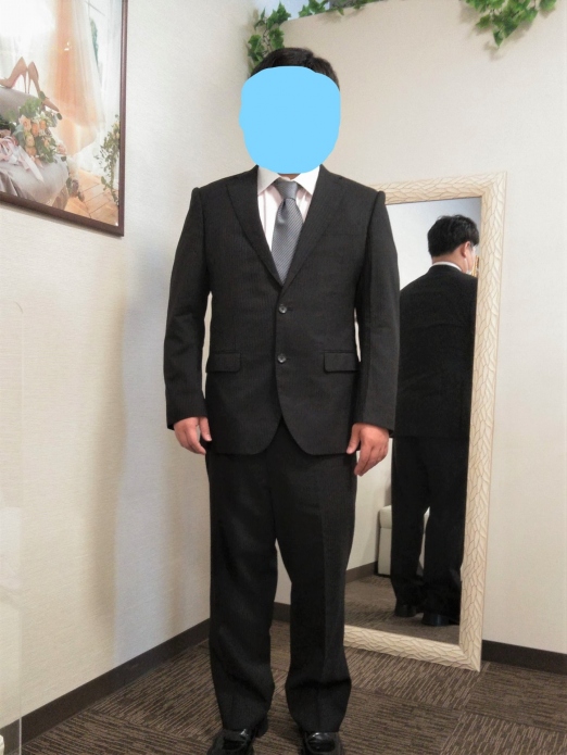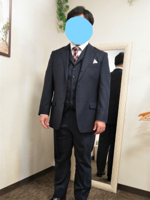 After:体型にピッタリ&スーツに合わせたネクタイとチーフ+オニューの靴で オシャレ感UP💛
