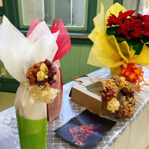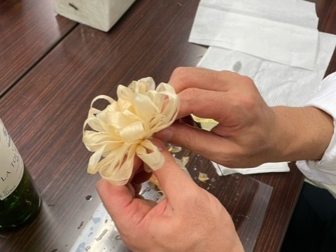 続けて自作の木のリボンを使ってワインをラッピング🎀