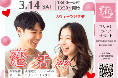 3月14日(土)スウィーツ好きの恋活パーティー開催